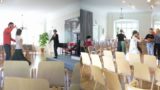 中にはかわいらしい金髪の小さな子が走りまわっていて、突然のお客さんにうれしそう。落ち着かないようで、はしゃいでるのが分かる。