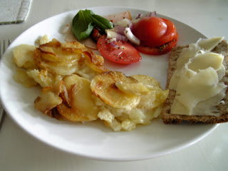 ヤンソンさんの誘惑(Janssons frestelse) スウェーデンごはん 2006.09.252025.09.19 今日の昼食。 スウェーデンの伝統料理、ヤンソンさんの誘惑。初めてこの料理の名前を聞いた人は「は?」って思うはず。ポテトをパイのように重ねたグラタンのようなもの。食べるのは実は初めて。あっちからも、こっちからも、「ヤンソン」「ヤンソン」という声がテーブルから聞こえてくるので「これが例の?」と思ったら、そうでした。