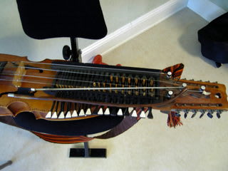 写真はアンデシュのニッケルハルパ。キーの部分がペイントではなく上から何か(素材は不明)を貼り付けています。