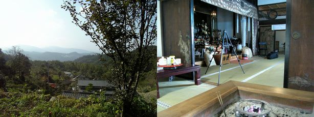 宇佐駅から主催関係者の方の車で移動。のどかな田舎道を走り小高い山の中腹にあるお寺。眺めがすばらしい!お寺の裏から山頂に続く石階段も風情があっていい感じ。