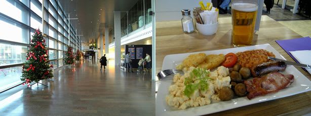 ムダと分かっていても寝てるくらいならSASともう一度喧嘩してこよう!と、ふと思いつき、SASのカウンターへ。すると既にすごい行列。1時間は並んだかな?やっと私の番!でもこのカウンターの人はコマンダー風じゃない。昨日乗れなかったと私が言うと、謝りこそしないが(←徹底してる)穏やかな応対で10ポンドの食事券をくれた。「どこでつかえるの?」「空港中ならどこでも。」