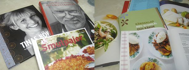 写真左:左はTinaというテレビで人気の女性料理家の本、右がLeifという人の”husmanskonst”の本、手前はスウィーツ本。