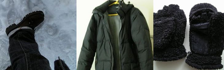 これもカナダで買った安物。アクリルとナイロン製。指が半分まであって、すぽっと上からかぶせられるミトンも手の甲の部分についている。この程度で、指先に寒さを感じたことはカナダでもスウェーデンでもなし。スキー用手袋でも十分。
