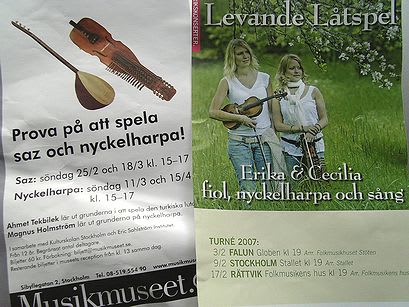 左は、ストックホルムの音楽博物館で、ニッケルハルパを実際に弾かせてくれる体験イベントがあるので興味のある方はいかが?当日、やってくる(先生役?)のプレーヤーはマグヌス。この学校の卒業生で、ニッケルハルパチャンピョン、KMH(王立音楽院)も卒業、すばらしいプレーヤーです。