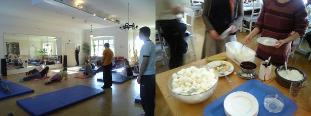 他には二人がかりでよってたかって押さえつけ、足を押したり引っ張ったりするストレッチなどもやっております。