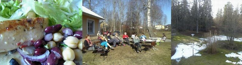 今日は春の日差しで、FIKA(ティーブレイク)はみんなコーヒーを持って外へ。