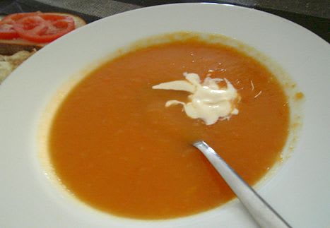 にんじんとじゃがいものスープにサワークリームを添えて。
