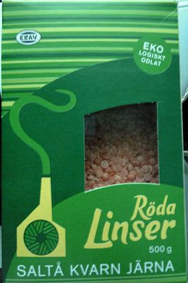 写真のように赤みのあるものはröda linser。(追記:レンズ豆のことでした。当時は日本にはあまり入ってきていませんでした。今は日本でも輸入食品店で見ます。)