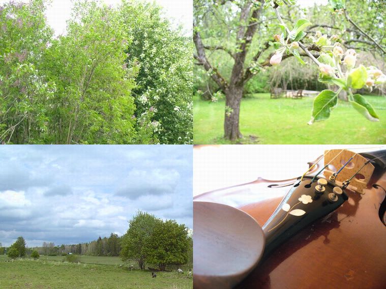 新緑と花 スウェーデンでの生活 2007.05.182025.09.24 写真は最近の新緑の様子。 写真右上は、学校の裏にある、りんごの木のつぼみ。もう、今にも花が咲きそう。 今日は最終リハの後、自転車でスーパーへ。その途中で遭遇した、ヤギの放牧(写真左下)。 写真右下は友人のバイオリン。ストリング・ホルダー部分に花が!1940年代に流行ったらしい。 明日から1週間やるコンサートを前に今夜はみんなで、中庭でソーセージを焼いてリラックス。このソーセージを焼くことをBBQと呼ぶ。冗談じゃなく、本当のこと。