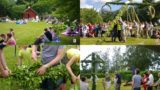到着するとさっそく庭でfika(ティーブレイク)。楽器も弾きます。