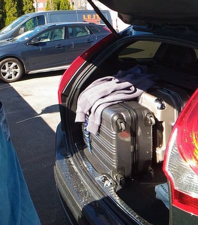昔は無かったんですが、音楽のための行き来をするうちに楽譜、資料、CD、気に入った食品やお土産も行く度に増えて…困った事態になってきました。写真はレンタカーに積んだ荷物。奥から楽器の木箱ケース、スーツケース2つ。右側のスペースに入りきらない荷物(段ボール、紙袋)と、各自の機内持ち込みリュックやバッグ計4つ。車もパンパンです。